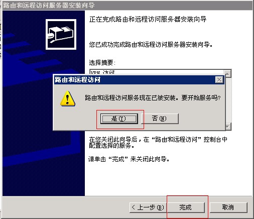 第五步, 點擊“完成”。系統(tǒng)提示“要開始服務(wù)嗎?”,選擇“是”。