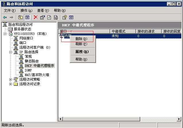 第十一步,刪除“DHCP中繼代理程序”中的“內(nèi)部”項目。