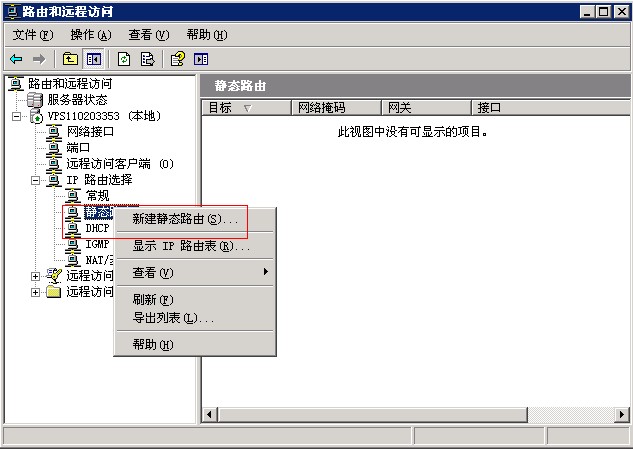 第九步,右鍵點擊“靜態(tài)路由”,再點擊“新建靜態(tài)路由”。