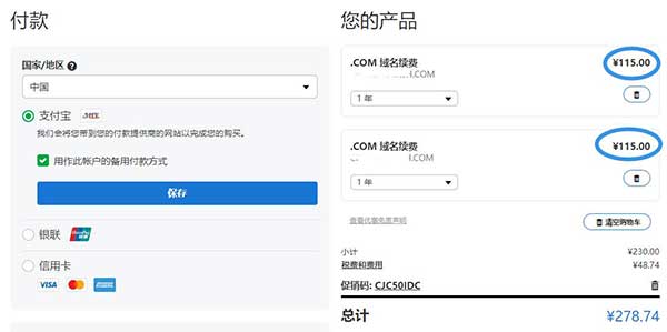 第二年網(wǎng)站域名續(xù)費(fèi)的時(shí)候發(fā)現(xiàn),網(wǎng)站域名價(jià)格是國(guó)內(nèi)域名續(xù)費(fèi)的2倍左右,真實(shí)一個(gè)不小的坑,不少站長(zhǎng)選擇尋找優(yōu)惠碼,但是能優(yōu)惠的優(yōu)惠碼鳳毛麟角,所以還是不得不繼續(xù)高額續(xù)費(fèi)。